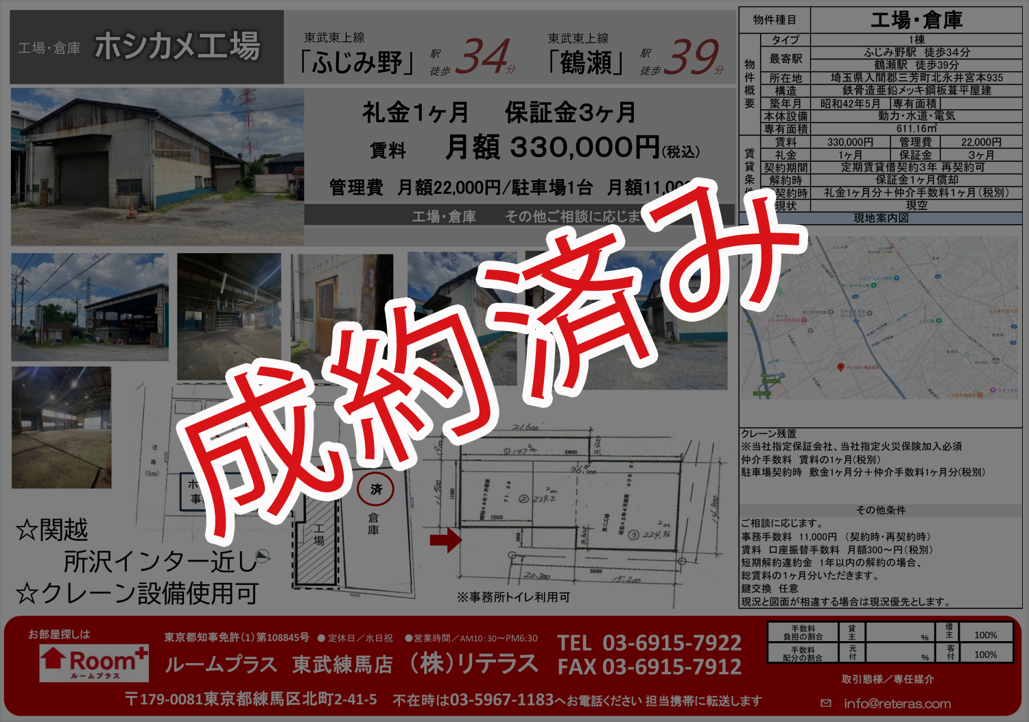 611.16㎡| 家賃:330,000円| 礼金・保証金:1ヶ月/3カ月| 築年数:昭和42年5月| アクセス:東武東上線 ふじみ野駅 徒歩34分|鶴瀬駅 徒歩39分| 所在地:埼玉県入間郡三芳町北永井宮本935 |